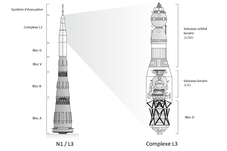 Le thème L1 était conforme à la proposition de 1963, il impliquait le lancement d’une série de pétroliers en orbite pour alimenter la fusée qui enverrait le vaisseau Soyouz 7K autour de la lune. Le thème L2 envoyait un rover lunaire robotique voyageant sur la surface lunaire pour effectuer des recherches scientifiques. Celui-ci serait également assemblé en orbite terrestre avec une combinaison de pétroliers. Le thème L3 était au centre du programme de Korolev. Le véhicule d'équipage principal serait un vaisseau spatial Soyouz modifié. La charge utile d'atterrissage principale serait lancée en orbite terrestre par un N1, suivi de deux N1, qui transporteraient du propulseur supplémentaire pour l'étage translunaire. Un quatrième lancement d'un propulseur dérivé du R-7 amènerait l’équipage jusqu'au complexe. La masse totale en orbite terrestre serait de 200 tonnes, dont 21 tonnes