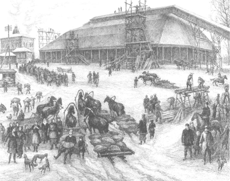 Mettant ses compétences d'ingénieur au service des problèmes locaux, Kondratyuk conçoit un énorme silo à grains de 13 000 tonnes à Kamen-na-Obi, dans le sud de la Sibérie. Le silo est construit en bois sans aucun clou car le métal est rare dans cette région. Cette ingéniosité ira à son encontre quand, en 1930, pendant les purges staliniennes, il est arrêté par le NKVD comme saboteur. Pour le NKVD, le manque de clous dans la structure est considéré comme un acte terroriste, l’ingénieur a délibérément souhaité que le silo s’effondre. Reconnu coupable d'activités antisoviétiques, Kondratyuk est condamné à trois ans de Goulag, mais vu ses compétences, il est envoyé dans une sharashka[ii] plutôt que dans un camp de travail. Il se fait remarquer par le superviseur du camp pour ses talents, et à la demande de celui-ci, en novembre 1931, une commission d'examen révise son statut de « prisonnier » à « exilé » et il part travailler sur des projets céréaliers sibériens. Répondant à un concours national pour concevoir un grand générateur d’énergie éolienne pour la Crimée, Kondratyuk se rend à Moscou où il rencontre un jeune ingénieur, Sergueï Korolev, chef du groupe