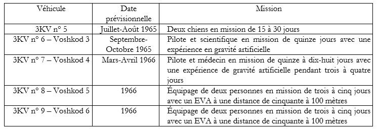 Pour le programme piloté, la question était de savoir quelle suite donnée au vol spectaculaire de Voshkod 2 de Belyayev et Leonov de mars 1965. En février 1965, l’OKB-1 a publié un document sur le programme Voshkod :