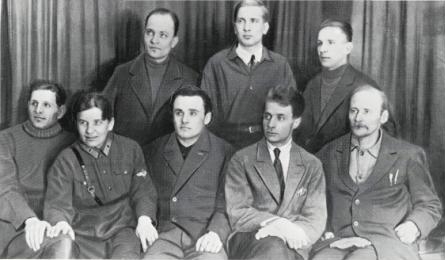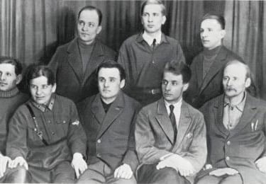 Les membres de l'équipe GIRD en 1932. En haut au centre se trouve Yuriy Pobedonostsev, en bas au centre Sergey Korolev. À l’extrême droite se trouve Fridrikh Tsander.