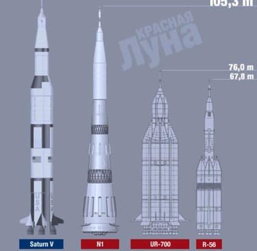 L'UR-700 comparée à ses concurrents Saturn V, N-1 et R-56
