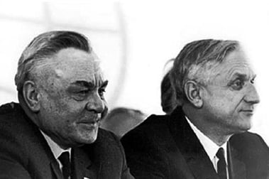 Georgy A. Tyulin, au premier plan, et Youri Mozzhorin, Directeur du NII-88