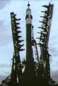 Soyouz peu de temps après son installation sur la rampe de lancement.