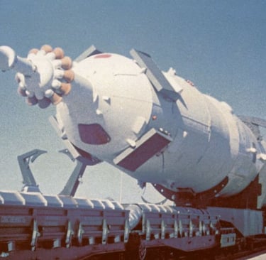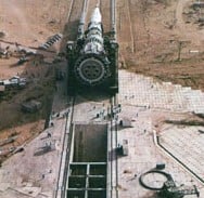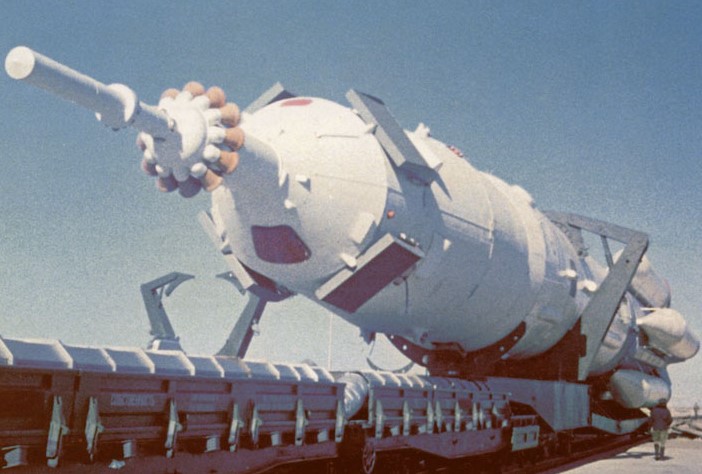 Le vaisseau spatial 7K-L1 n°13 emmené sur son pas de tir