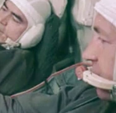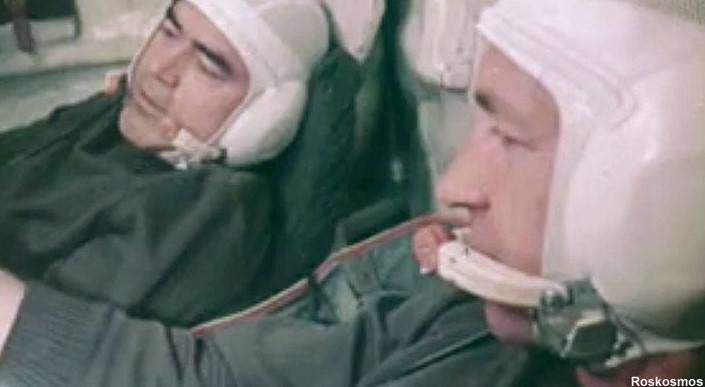 Lorsque je suis entré dans la cabine de l'avion, Sevastyanov était assis sur le canapé, tandis que Nikolayev était à une petite table. Je savais qu'ils avaient du mal à supporter le retour à terre, mais je ne m’attendais pas à les voir dans un si piteux état. Pâle, bouffi, apathique, sans étincelle de vitalité dans leurs yeux, ils donnaient l'impression de gens complètement émaciés et malades[1]
