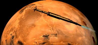 • Du Vaisseau de débarquement sur Mars (MPK) pour atterrir sur la surface martienne. Après la séparation du MEK, le MPK laisserait tomber son appareil d'amarrage. Après la décélération aérodynamique dans l'atmosphère martienne, le moteur d'atterrissage du MPK freinerait le vaisseau spatial pour un atterrissage en douceur sur la surface. A l'intérieur se trouvaient une section d'habitation cylindrique, une section de transition et l'étage d'ascension avec sa cabine sphérique. Le MPK avait un diamètre de 11 m, une hauteur de 8,5 m et une masse d'environ 20 tonnes.