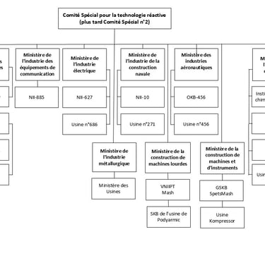 Par analogie avec le décret atomique précédemment publié en août 1945, ce décret sur les missiles prévoyait la création d'un « comité spécial » pour la coordination de tous les projets. Ce Comité spécial, top secret, était composé de neufs membres et rattaché directement au Conseil des Ministres. Georgiy M. Malenkov, âgé de quarante-quatre ans, était nommé président du Comité, choix assez surprenant, dans la mesure où Malenkov avait très peu d’expérience dans le domaine de l’artillerie et des fusées. Malenkov était entouré de deux vice-président : Ustinov, chef du commissariat aux armements et Ivan G. Zubovich, quarante-cinq ans, expert en électronique qui, jusqu'à sa nouvelle nomination, avait