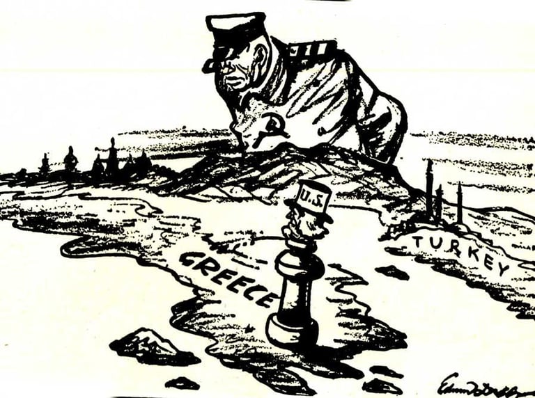 A cette époque, le président américain Harry S. Truman avait durcit sa position envers l’URSS, passant d’une politique de collaboration héritée de Roosevelt à une politique de confrontation. Fin 1946, l’URSS avait renouvelé de très fortes pressions sur la Turquie, et la situation s’aggravait en Grèce, où la Guérilla, soutenu par la Yougoslavie et la Bulgarie, progressait. Le 21 février 47, le gouvernement britannique à bout de ressources avait informé Washington qu’il devait cesser son aide économique et militaire à la Grèce et à la Turquie dès le 31 mars, et avait demandé aux États-Unis de prendre le relais. Le 28 février Truman avait reçu les chefs de files du congrès. Elevant le débat il avait exposé les conclusions auxquelles étaient parvenu l’administration après un an de réflexion : L’opposition entre les Etats-Unis et l’URSS était une lutte entre deux idéologies inconciliables ; l’URSS était expansionniste ; si la Grèce et la Turquie tombaient, ce serait ensuite autour du reste du Moyen-Orient et de l’Europe occidentale, à commencer par l’Italie, de succomber à l’idéologie communiste, il fallait donc aider les peuples libres à résister. Le 12 mars, Truman a pris la parole devant le congrès. Son discours, volontairement dramatisé, énonçait ce