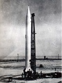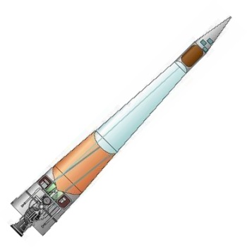 Esquisse du R-3A. La configuration réelle n'a jamais été publiée, mais il semble qu'il s'agisse d'un corps conique tel que recommandé par Gröttrup équipé d'un moteur R-2.
