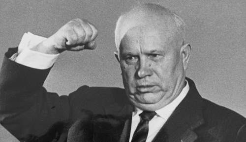 Dès 1955, Khrouchtchev a tiré immédiatement toutes les conséquences du développement des armes nucléaires : il a réduit les forces conventionnelles de 5,7 à 3,6 millions d’hommes, dès 1956 à l’occasion de la crise de Suez, il a commencé à pratiquer une diplomatie nucléaire énergique et n’a pas hésité à recourir fréquemment à la menace de l’emploi de ses nouveaux armements. En décembre 59, il a donné une impulsion à la création d’une nouvelle arme, les fusées stratégiques, au détriment des forces terrestres, aériennes et maritimes traditionnels. En janvier 1960, il a prononcé un discours important sur les questions militaires en déclarant que la prochaine guerre serait une guerre de fusées nucléaires et que l’URSS résisterait mieux, grâce à l’étendue de son territoire, à la dispersion de sa population, à son organisation socialiste. Une telle guerre marquerait la fin du capitalisme.