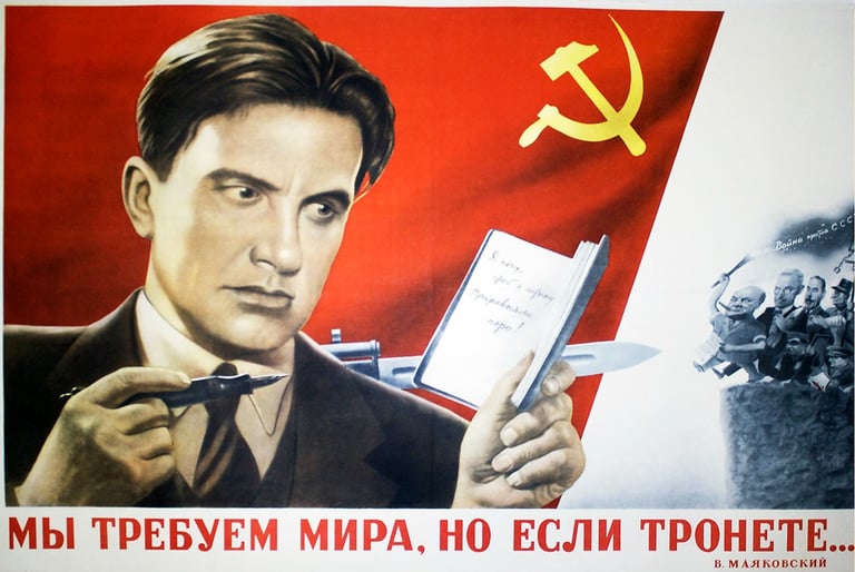 "Je veux que la plume soit égale à la baïonnette !", un vers du poème Domoi ! (En route vers la maison !) de Vladimir Maiakovskii (1893-1930)