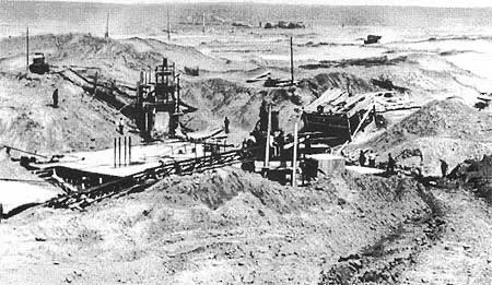La construction a eu lieu 24 heures sur 24. Des dizaines de millions de mètres cubes de terrain ont été réaménagés, des centaines de millions de mètres cubes de béton ont été coulés, des dizaines de millions de briques ont été livrés sur les divers sites, et des centaines de kilomètres de tuyaux de divers diamètres, des milliers de bobines de câble ont été livrés.