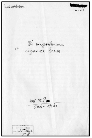 [3] M. K. Tikhonravov, Memorandum on an Artificial Earth Satellite, May 26, 1954, History and Public Policy Program Digital Archive, Published in Raushenbakh, editor (1991), 5-15. Selected, edited, and annotated by Asif Siddiqi and translated by Gary Goldberg.