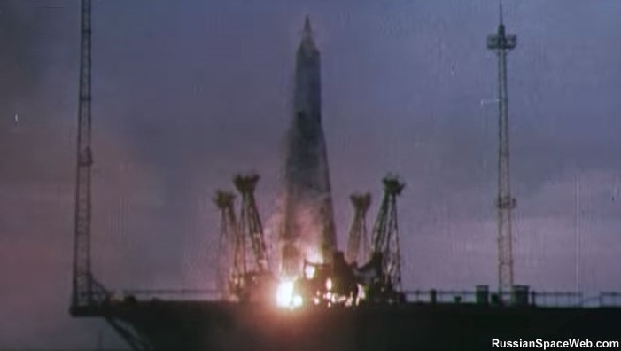 fusée d'appoint, numéro 8K71PS M1-2PS. Les températures à Tyura-Tam étaient très froides à cette période de l’année et le conteneur a été chauffé pendant les préparatifs du lancement.
