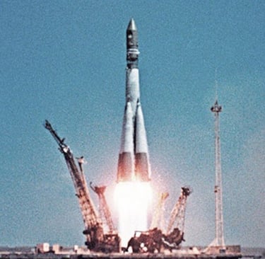 Le premier vaisseau satellite du monde "Vostok" avec un humain à bord a été lancé sur une orbite autour de la Terre depuis l'Union soviétique. Le pilote-cosmonaute du vaisseau spatial satellite "Vostok" est un citoyen de l'Union des Républiques socialistes soviétiques, major de l'aviation Yuriy Alekseyevich Gagarine.[4]