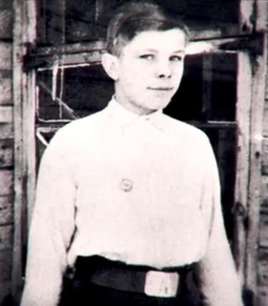 Youri Gagarine est né en 1934 à Klouchino près de Gjatsk (renommée Gagarine en son honneur en 1968) dans l'oblast de Smolensk, dans l'ouest de la Russie. Ses parents travaillaient dans la ferme collective d'un kolkhoze. Son père, Alexeï Ivanovitch Gagarine (1902-1973), était charpentier ; sa mère, Anna Timofeïevna Matveïeva (1903-1984) occupait l'emploi de laitière.