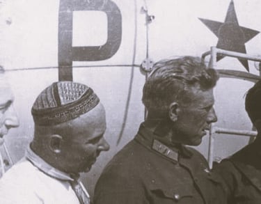 L'équipage du ballon stratosphérique soviétique « URSS-1 » : Ernst Birnbaum, Konstantin Godounov, Georgy Prokofievaï