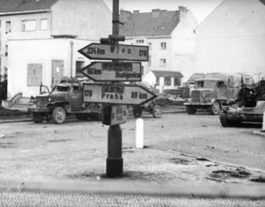 Au carrefour européen, Panneaux vers Vienne, Prague et Budejovice