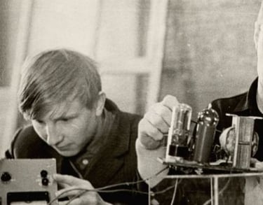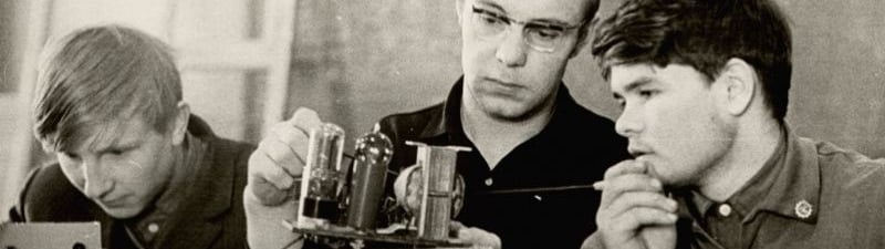 Les membres du Komsomol de l'école technique mécanique aux cours du club d'ingénierie électrique